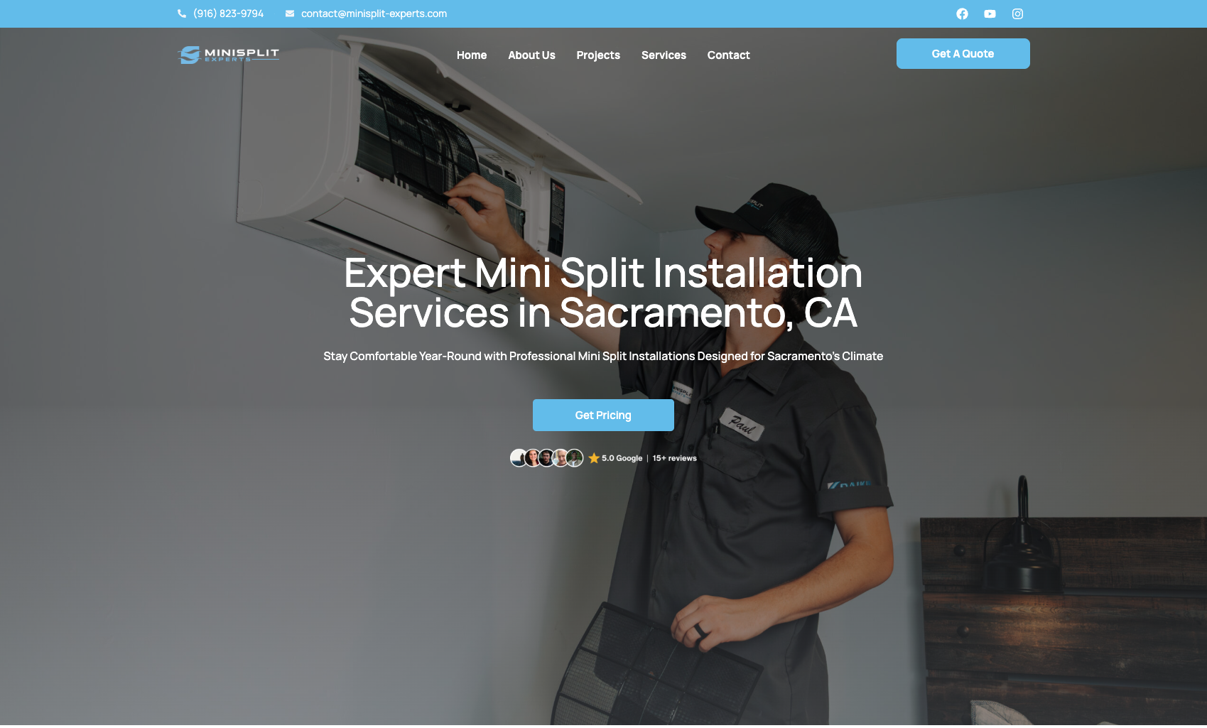 Before working with us, Mini Split Experts didn’t have a website that clearly communicated their niche or made it easy for customers to request quotes. Most HVAC competitors in Sacramento offered generic sites covering every service imaginable, which made it hard for Paul’s business—focused solely on mini split installations—to stand out online.